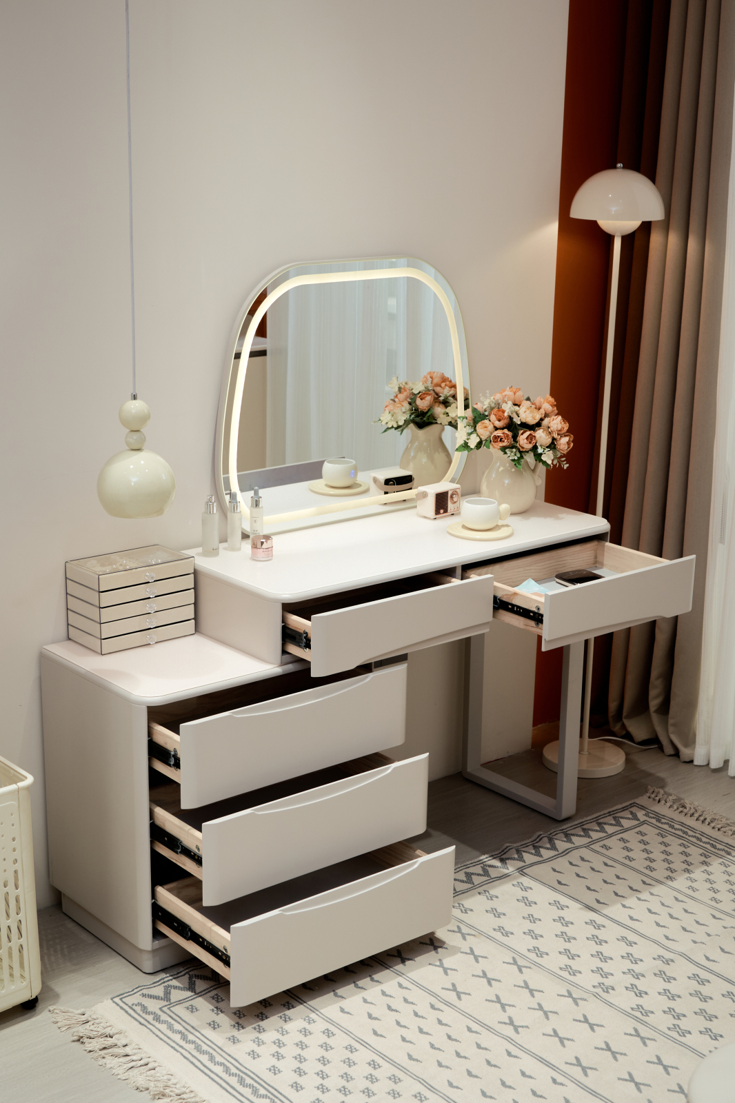 Setul de machiaj 962 este alegerea ideală pentru cei care își doresc un colț elegant și practic pentru îngrijirea zilnică. Masa are dimensiunile de 140x40x136 cm și este realizată din MDF vopsit de calitate superioară, cu un finisaj modern și ușor de întreținut.