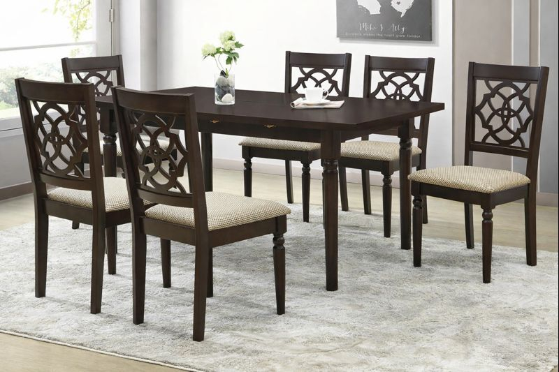 Adu un plus de confort și funcționalitate zonei de dining cu acest set de masă extensibilă din lemn, însoțit de 4 scaune tapițate. Conceput pentru utilizare zilnică, setul îmbină designul clasic cu materiale durabile, fiind ideal atât pentru mesele în familie, cât și pentru momentele speciale cu invitați.