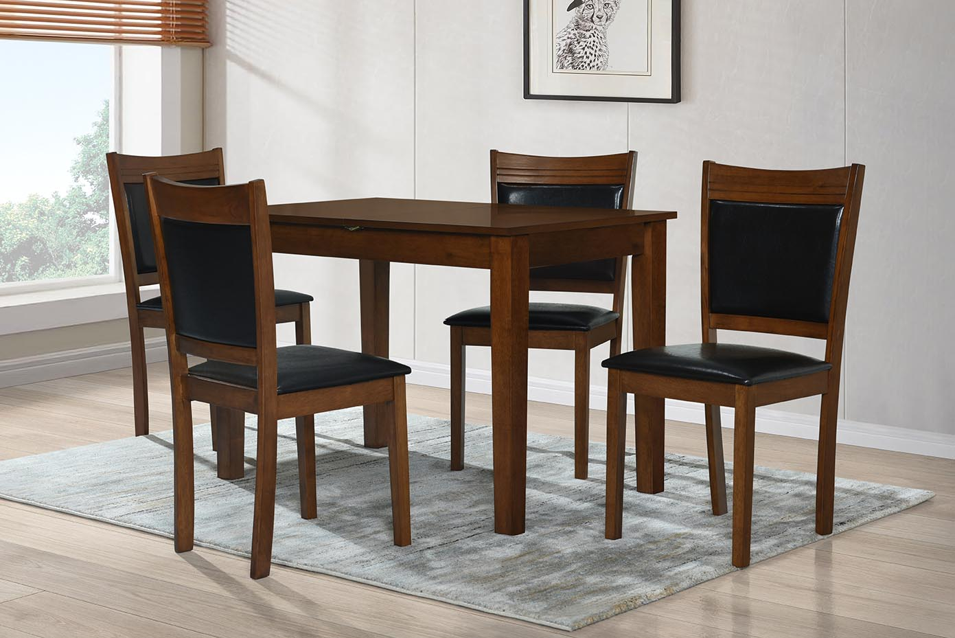 Adu un plus de confort și funcționalitate zonei de dining cu acest set de masă extensibilă din lemn, însoțit de 4 scaune tapițate. Conceput pentru utilizare zilnică, setul îmbină designul clasic cu materiale durabile, fiind ideal atât pentru mesele în familie, cât și pentru momentele speciale cu invitați.