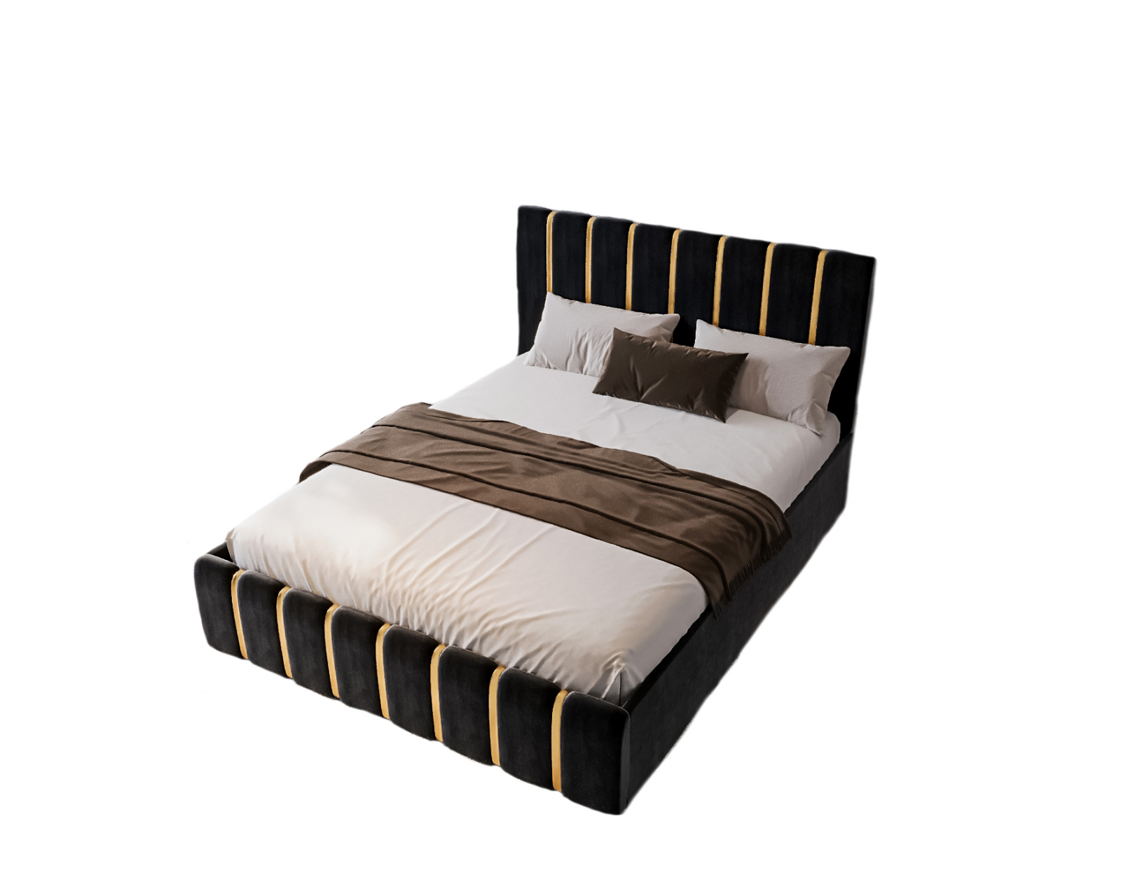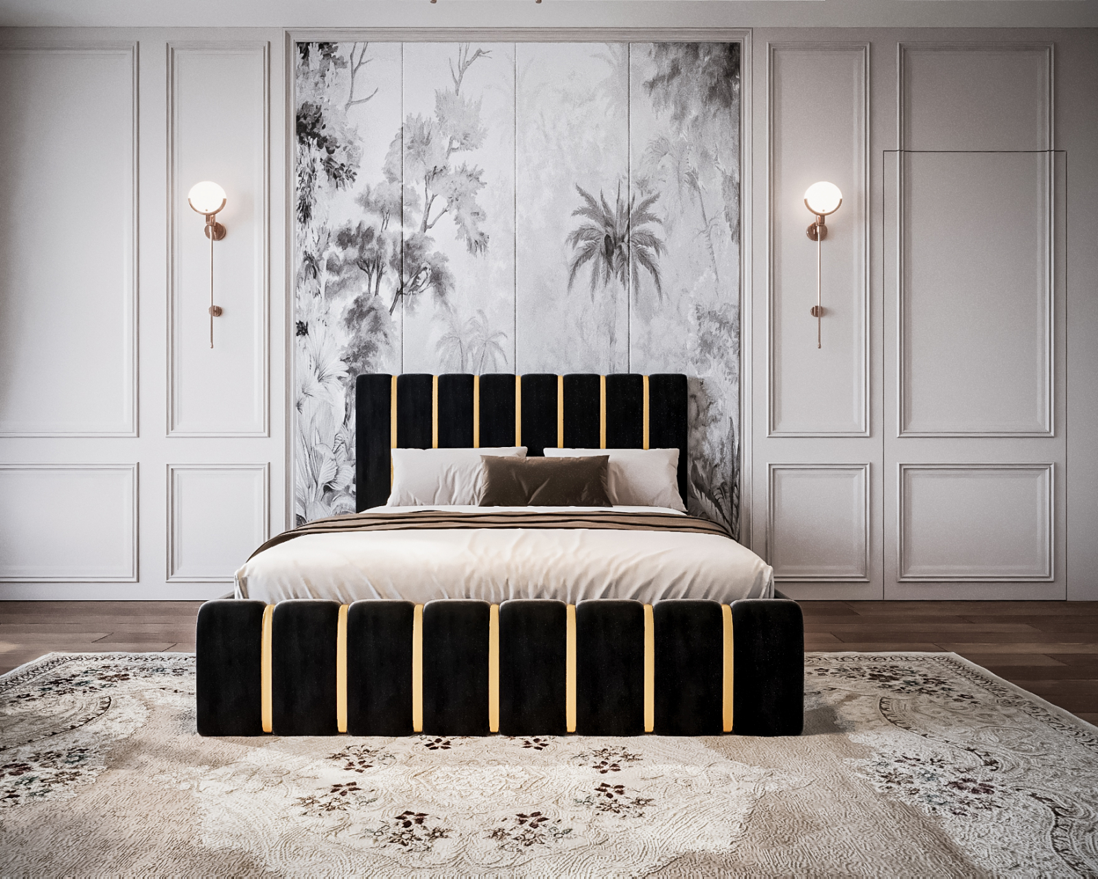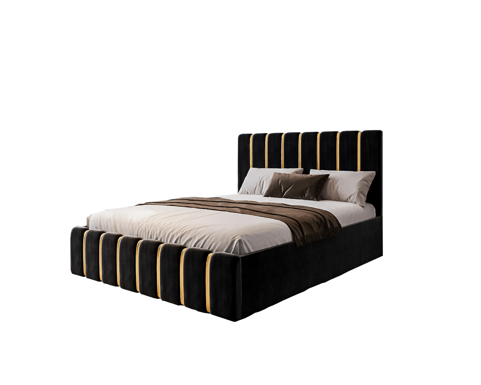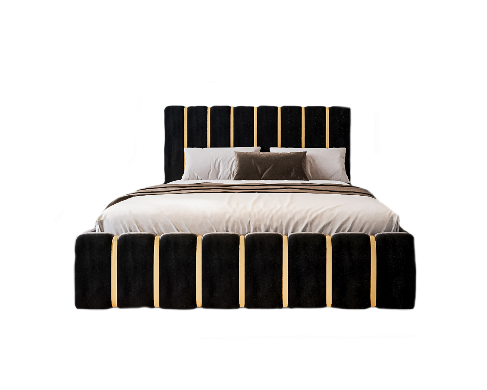 Pat Tapițat 160x200 cm – Velvet Negru cu Accente Aurii