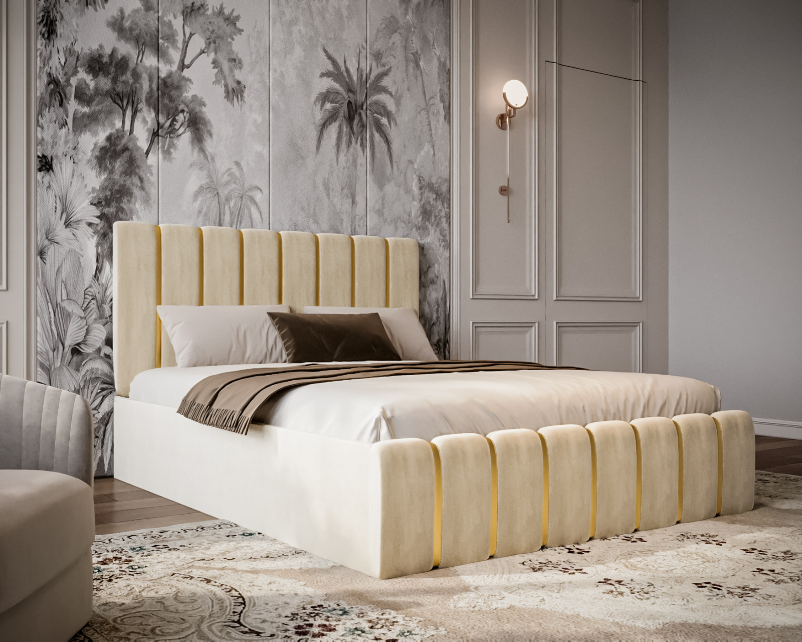 Pat tapitat LUX – Eleganță în nuanțe de crem, cu spațiu ascuns pentru tot ce ai nevoie